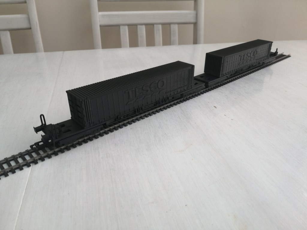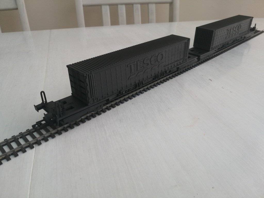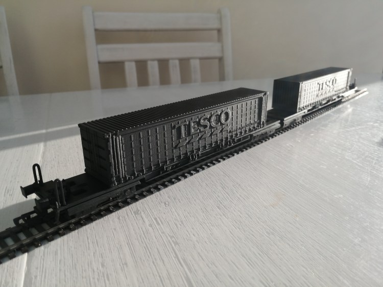 I have tried to include as much detail as possible to ensure it looks as close to the real thing as possible. The Containers clip on and off the wagon too. I have designed the wagons so they able to go round a first radius curve, which a majority of my own layout is constructed using. This makes the models very useable for those who’s layouts include tight curves due to lack of space.