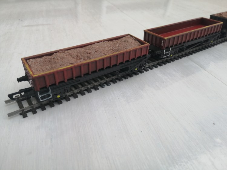 Fondly known as Coalfish Wagons but formerly called MHA 46 Ton 2 Axle Open Ballast Wagons. Generally found in EWS Colours all over the network and more specifically at TMD such as Toton, Peak Forest etc. They can also be found heavily weathered due to lack of paint. Please click here for images of Coalfish wagons.