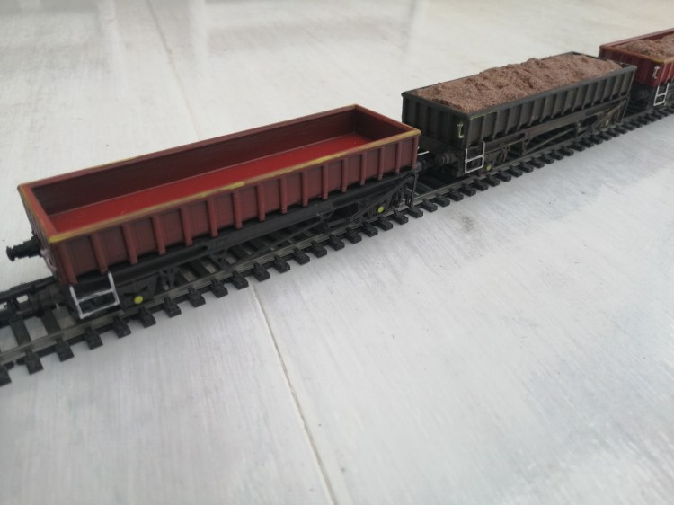 Price per Coalfish Wagon – £10.00, Fully assembled, body spray painted Maroon Red with yellow trim, Chassis spray painted black. Please see the images below.
